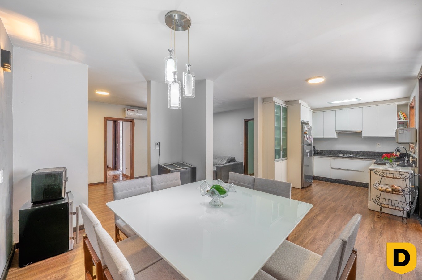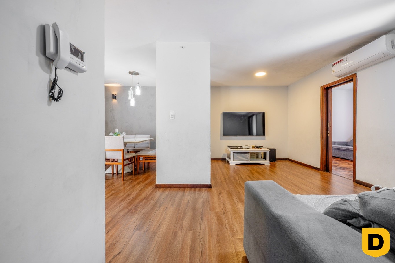 * Ampla sala de estar em dois ambientes;
