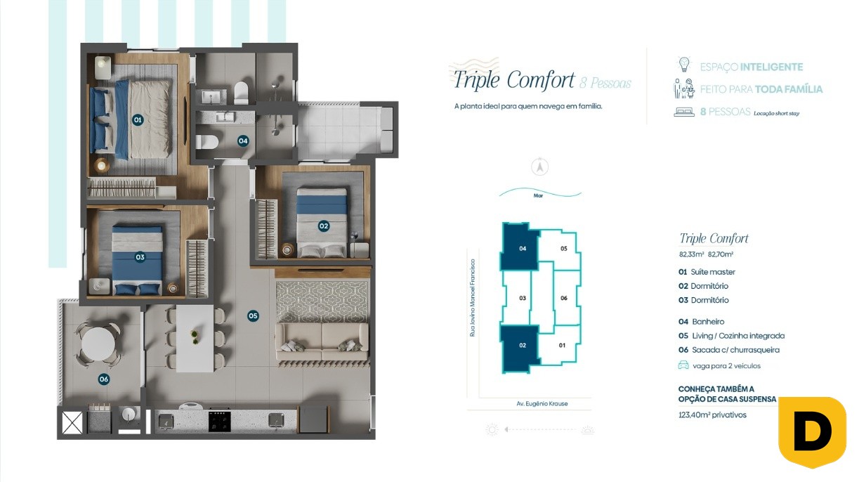 Localizado na Praia da Armação, em Penha, o empreendimento atende tanto quem quer um imóvel para curtir o litoral quanto quem busca um produto com potencial de rentabilidade em locação, em uma região turística e muito procurada.