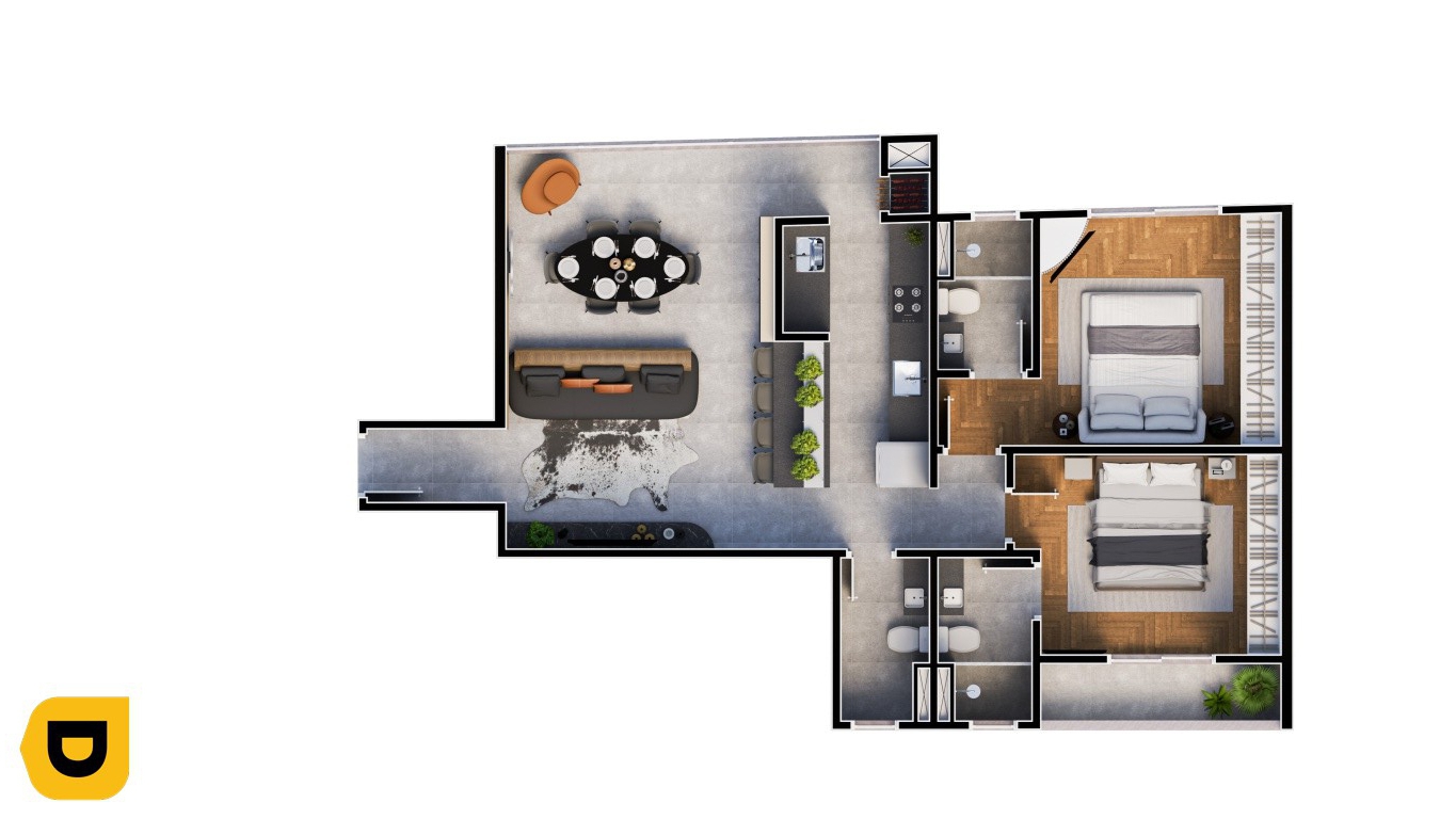 ✅ Suítes com janelas balcão estendidas e persianas automatizadas;