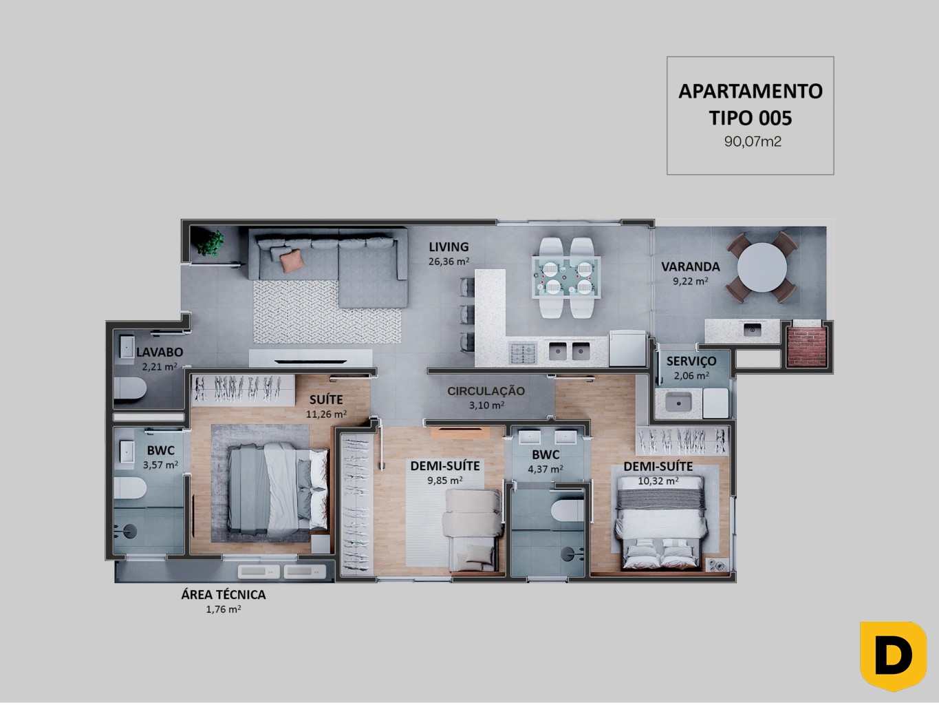 - Área Útil: 90.07 M2